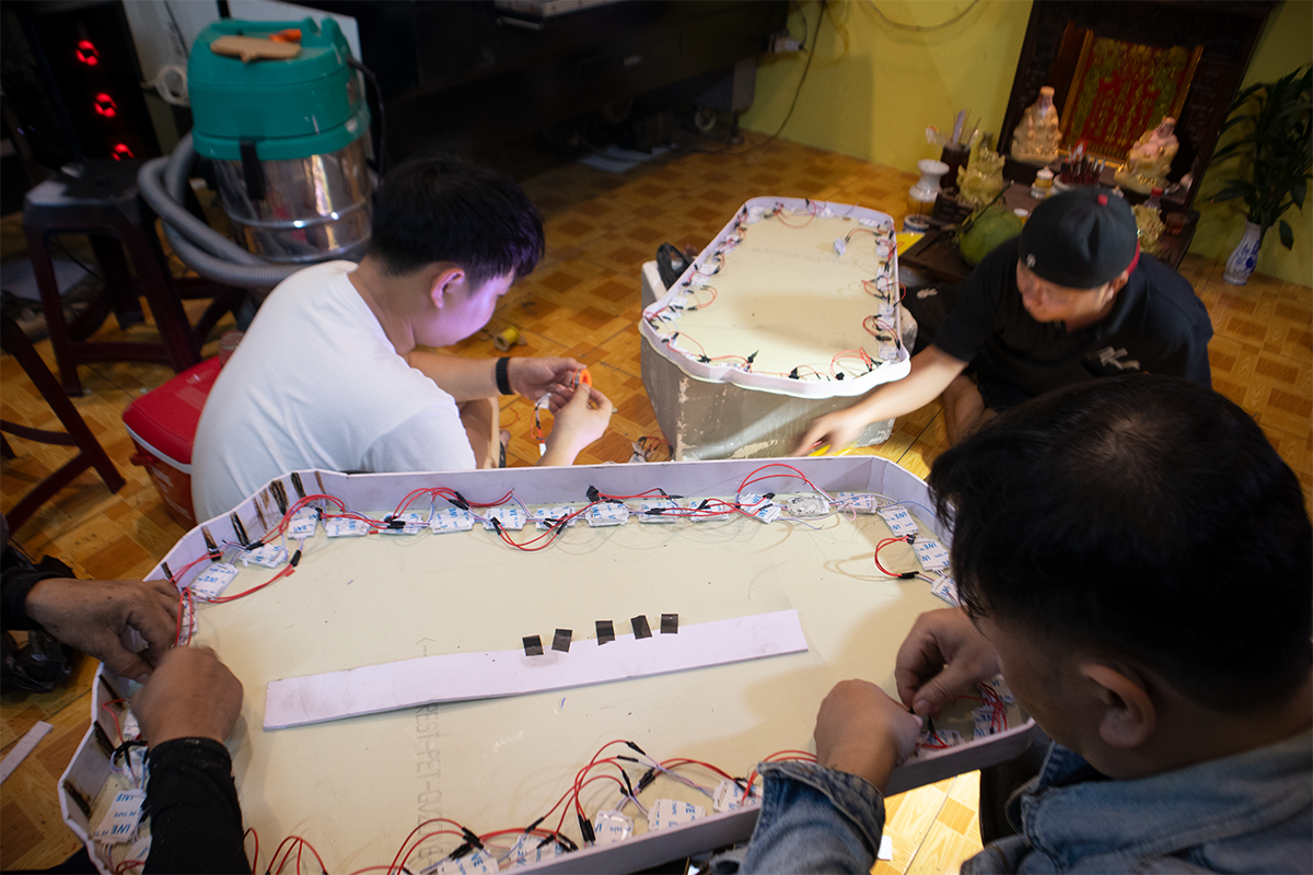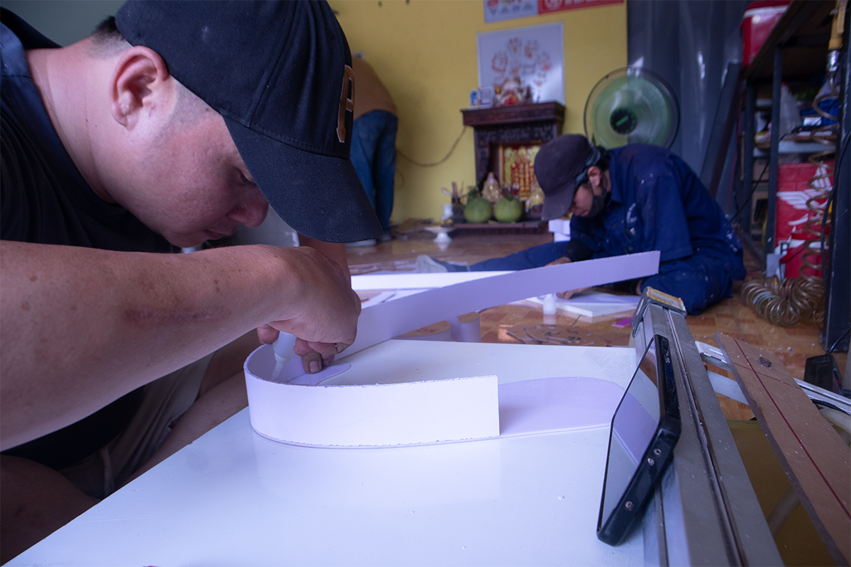 hoàn thiện bộ chữ và gắn đèn pha hắt