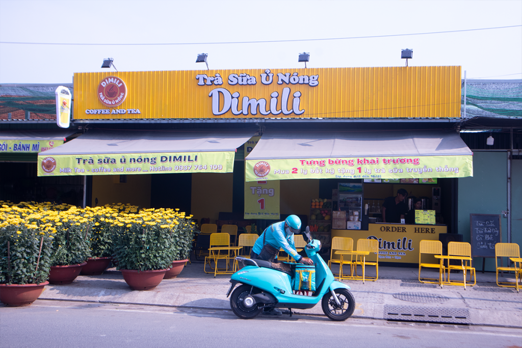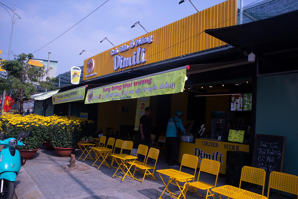 hoàn thiện toàn bộ các hạng mục trang trí tiệm trà sữa DIMILI